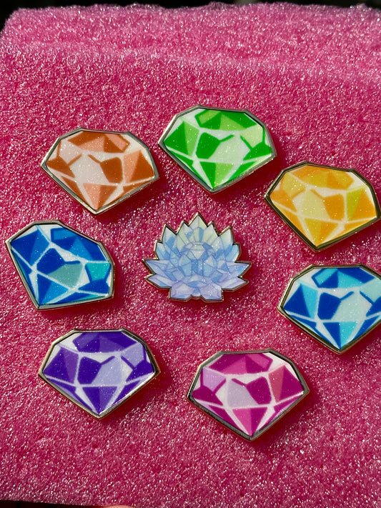 7 Rainbow Crystals + 1 Silver Crystal Pins Set